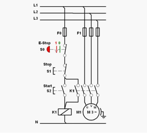 在等級B和等級1中,安全控制系統(tǒng)對故障的承受能力主要是通過采用適當(dāng)?shù)脑骷韺?shí)現(xiàn)。如圖所示,保險絲F0和急停按鈕S0串聯(lián)在主控回路中。若采用合理的保險絲和可靠的急停按鈕,這個回路里的風(fēng)險我們是可以接受的。但當(dāng)安全控制電路中出現(xiàn)任何一個單一故障,如急停按鈕觸點(diǎn)焊死,都會導(dǎo)致安全功能的丟失。故這個控制回路的安全等級只能夠是B級或1級。