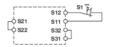 如果是雙通道不檢測觸點間短路故障工作方式的話則是短接S21和S22,兩個常閉觸點分別置于S11和S12,S11和S32之間。