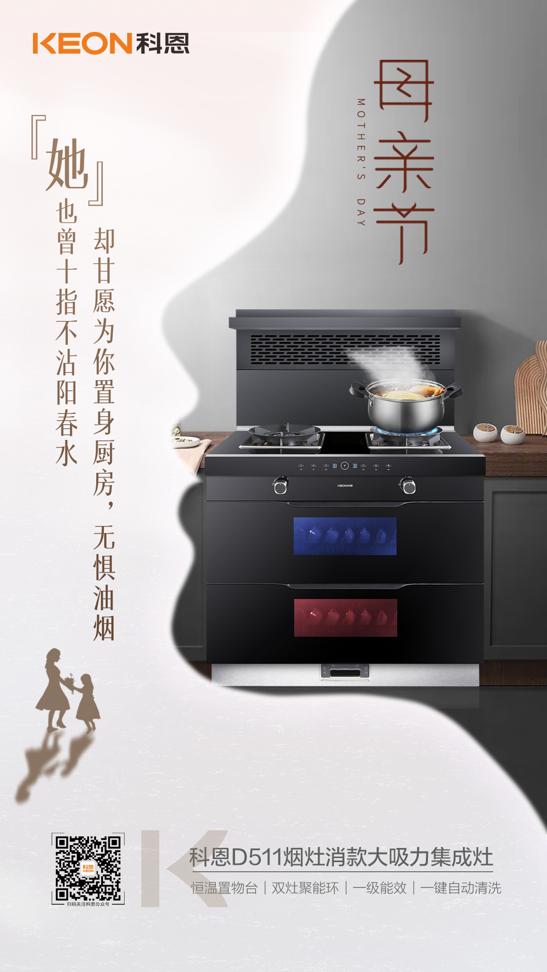 上次回家看到家里的煙機都抽不了油煙了,廚房滿是油煙味,用了十來年的灶具別不舍得換了,我在網上定了一臺科恩D511集成灶,油煙不過臉,吸得可干凈了,爆炒、煎炸變著法的燒都不會被嗆到,還有一按旋鈕就自動開啟煙機和1分鐘延時關閉的功能,一級能效,火力大炒菜快,特省氣省電!