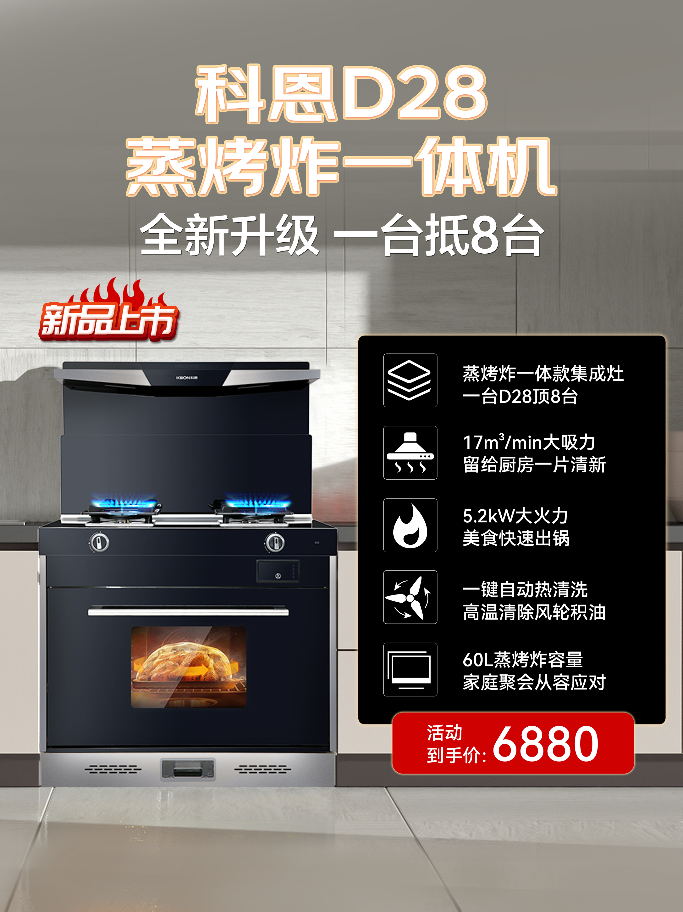 D28蒸烤炸集成灶超級秒殺:下單即贈康巴赫套鍋;咨詢客服送無菌菜板!