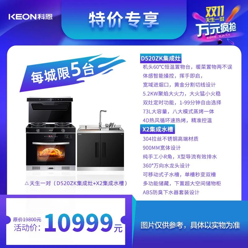 科恩X2集成水槽+D520ZK集成灶,套購即享特價優惠,集成智慧廚房萬元搬回家