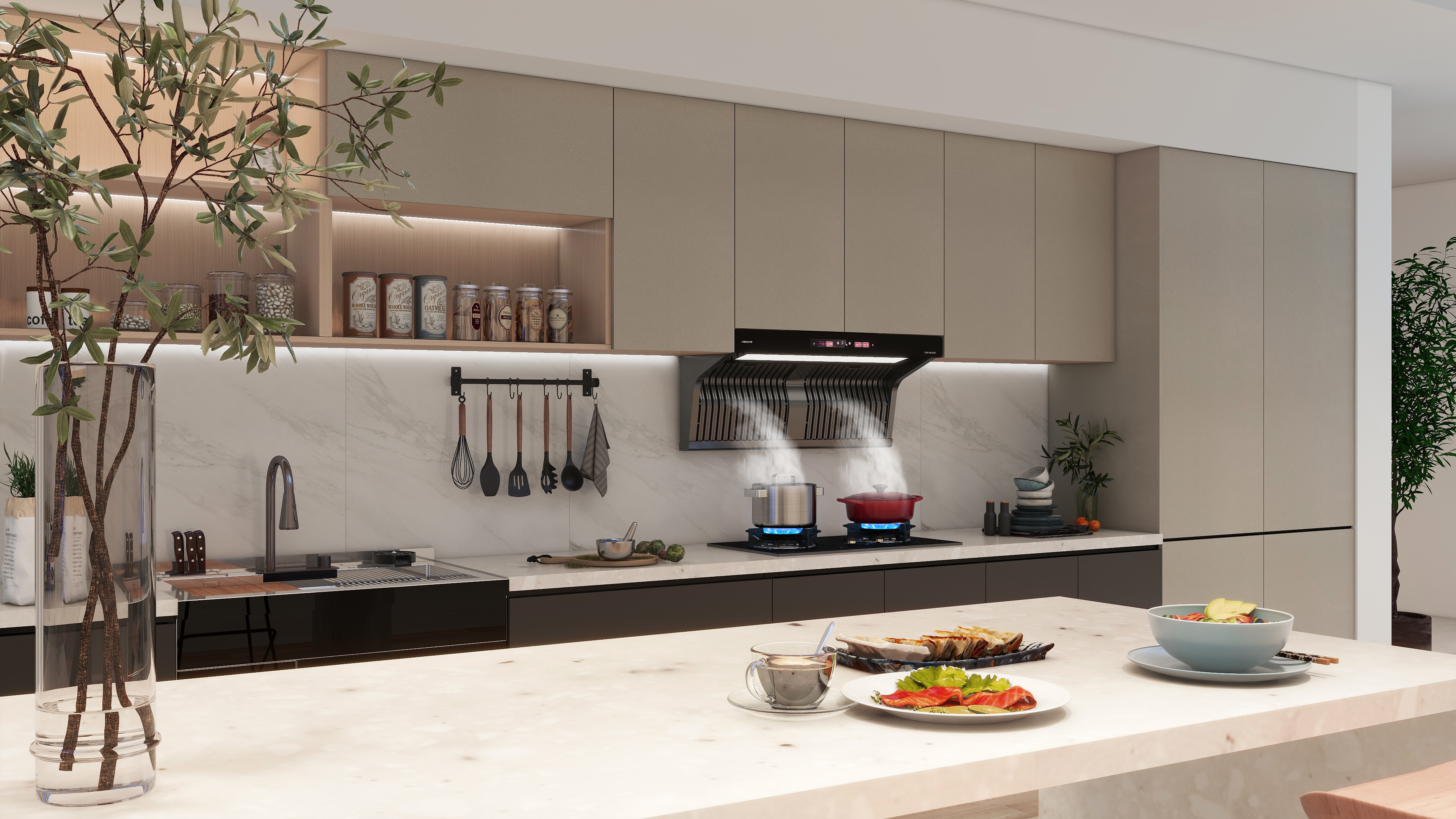 年輕一代都偏愛(ài),半開(kāi)放式及開(kāi)放式廚房。一是考慮到美觀度,還有一個(gè)就是陪伴!相對(duì)于老一代悶聲在廚房烹飪,年輕一代更喜歡在烹飪的時(shí)候與家人、朋友一起聊聊天。在這種新生的趨勢(shì)中,人們對(duì)廚房的期待,已經(jīng)不僅是為了“忙活出一頓飯”。