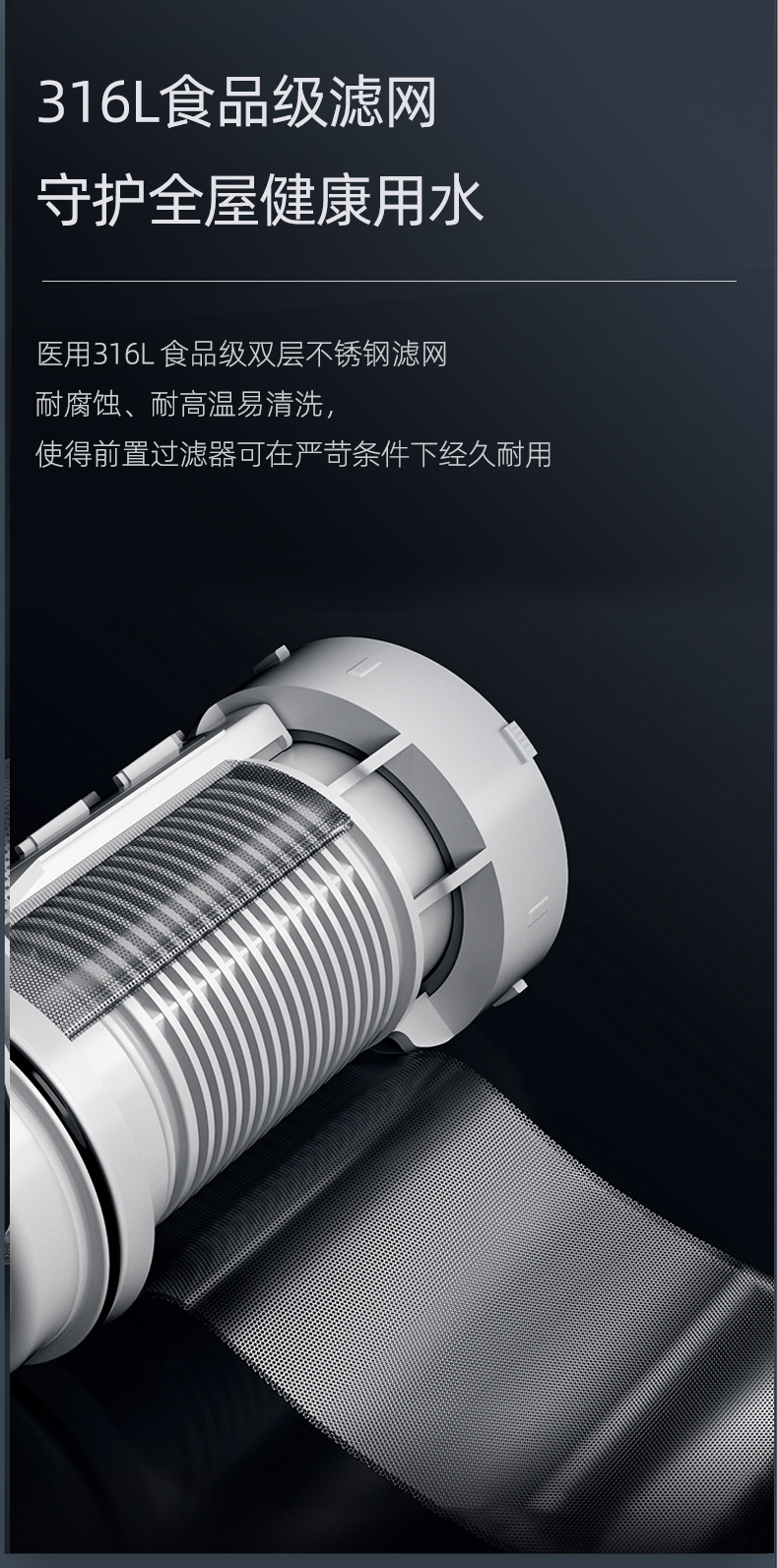 同時,Q30采用40um過濾精度,精密不銹鋼濾網(wǎng),精度過濾泥沙、鐵銹、蟲卵等大顆粒雜質(zhì),提升水質(zhì),延長家電使用壽命,完美解決新小區(qū)洗衣機進砂石的煩惱。