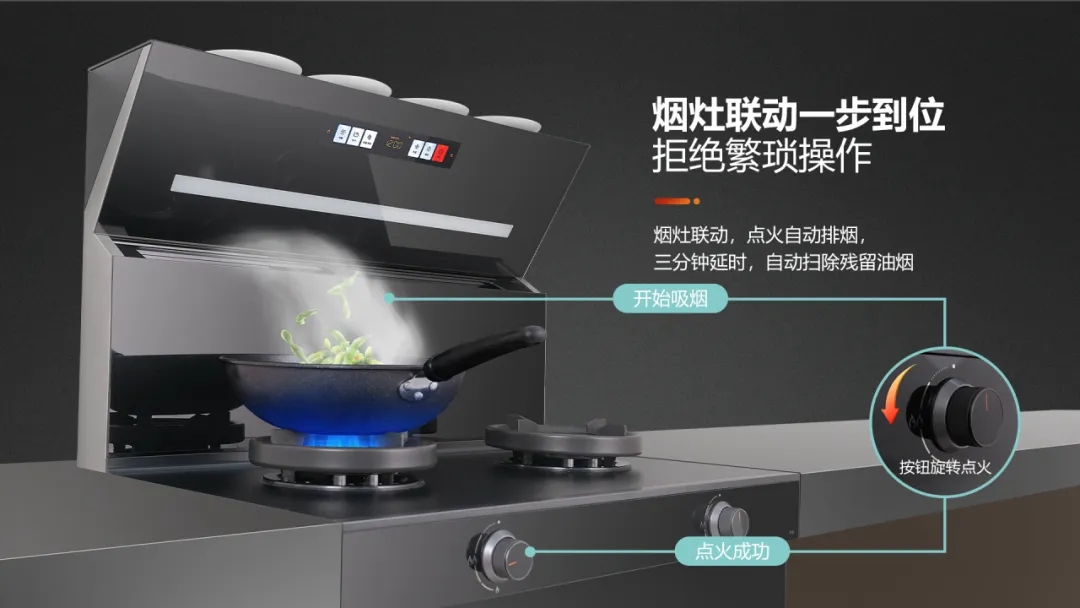 煙灶聯動功能,避免了忘開煙機的煩惱。