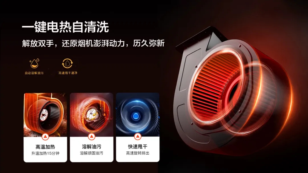 一鍵電熱自清洗,解放雙手,還原煙機澎湃動力,歷久彌新。