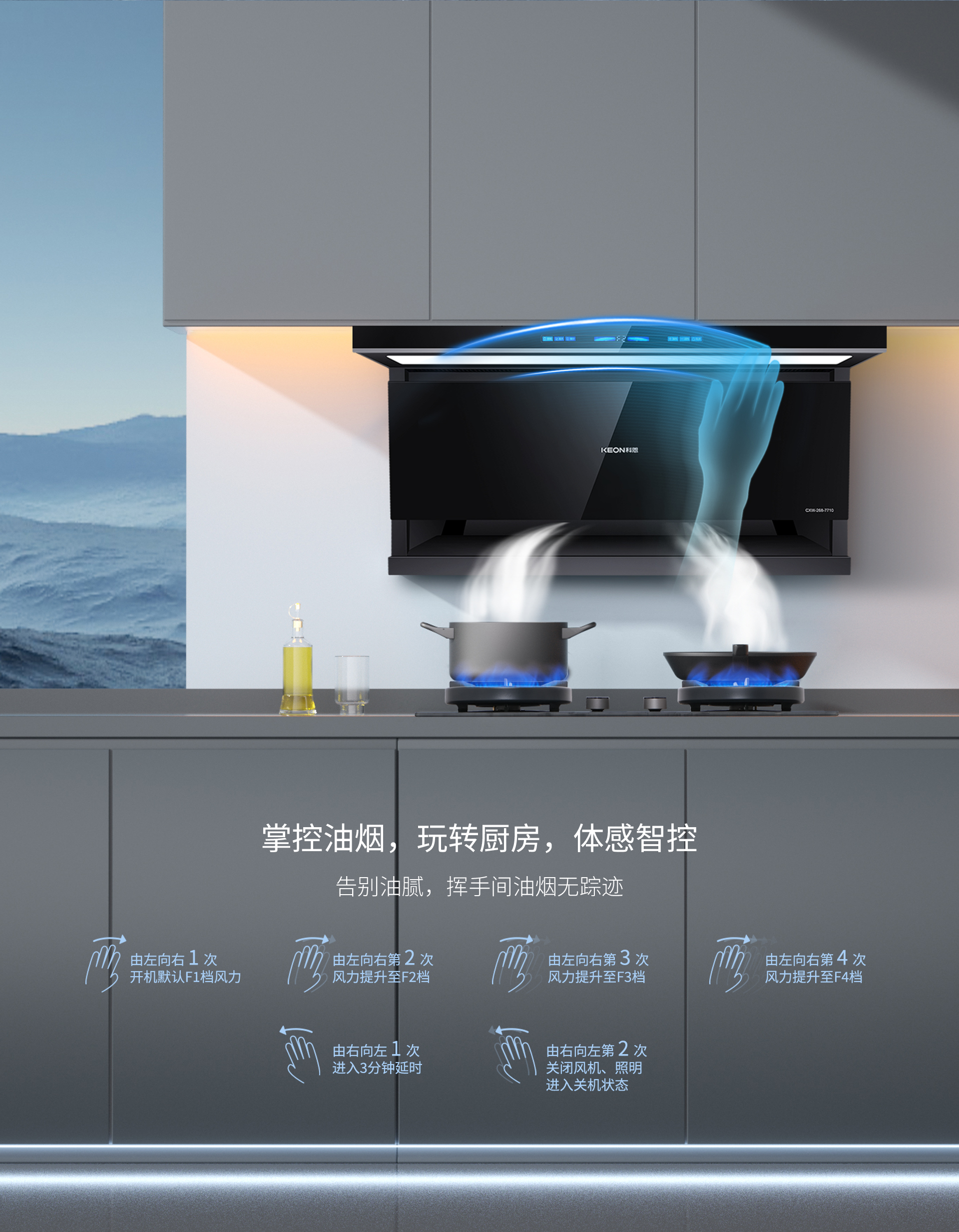 仰望系列7710智能聯(lián)動(dòng)煙機(jī)將智能科技融入到每一個(gè)操作環(huán)節(jié)。體感智控功能讓我們告別了油膩的手動(dòng)操作。只需輕輕揮手,油煙便消失得無(wú)影無(wú)蹤,就像魔法一樣。這種便捷的操控方式,讓我們?cè)谂腼冞^(guò)程中能夠更加從容,不再擔(dān)心手上的油污弄臟煙機(jī)面板。而且,煙灶聯(lián)動(dòng)功能更是展現(xiàn)出其智慧從容的一面。當(dāng)灶具點(diǎn)火的瞬間,煙機(jī)同步啟動(dòng),整個(gè)過(guò)程絲滑流暢,猶如自動(dòng)駕駛般精準(zhǔn)。這種智聯(lián)吸排科技,真正實(shí)現(xiàn)了煙機(jī)與灶具的完美配合,讓烹飪變得更加輕松愉快。