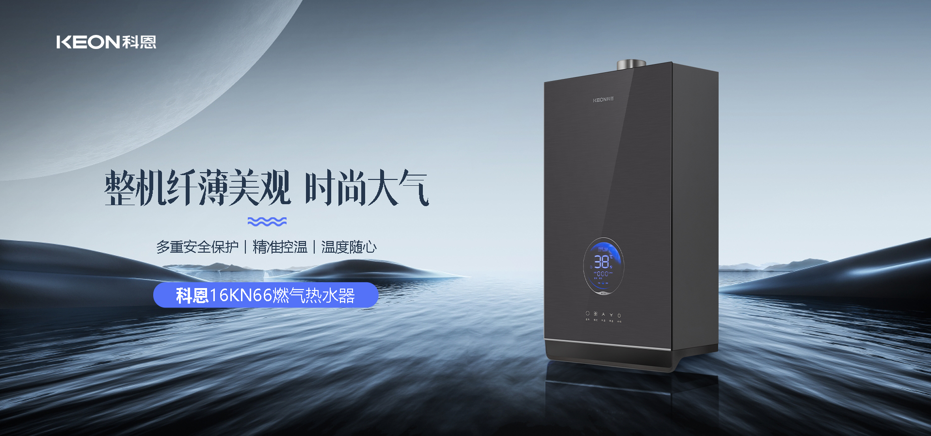 科恩16KN66燃氣熱水器機⾝纖薄,其獨特的外型設(shè)計新穎別致,仿佛一件精致的家居藝術(shù)品。它配有顯⽰屏功能指⽰,各種信息一目了然,操作便捷。采用新款黑灰玻璃材質(zhì),不僅質(zhì)感十足,還自帶氛圍燈,在點亮的瞬間,為浴室增添了一份優(yōu)雅與溫馨,美觀大方的外形使其能輕松融入各種家居風格。
