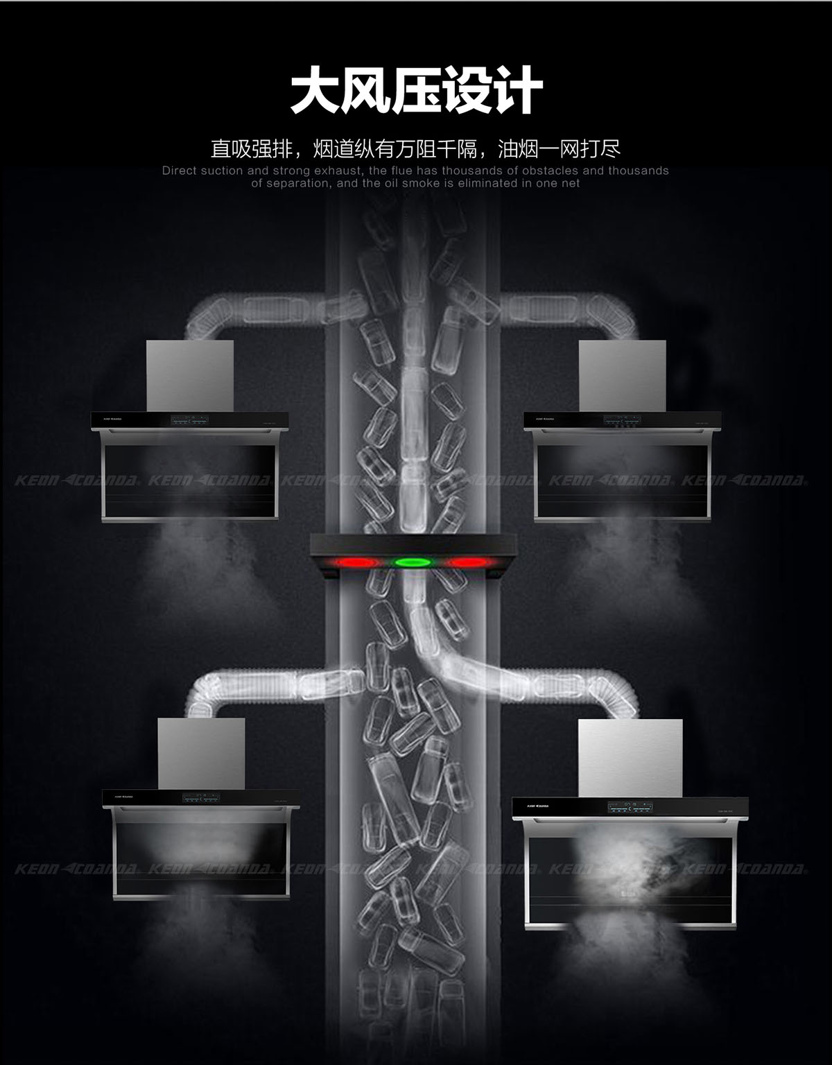 - 頂側兩吸,多方位爆吸油煙,四面八方不跑煙。