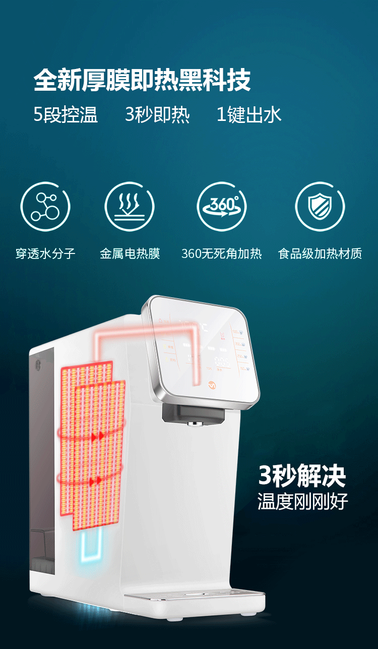 - 雙重防干燒、防漏水,過熱自動停止運行,缺水自動顯示。
