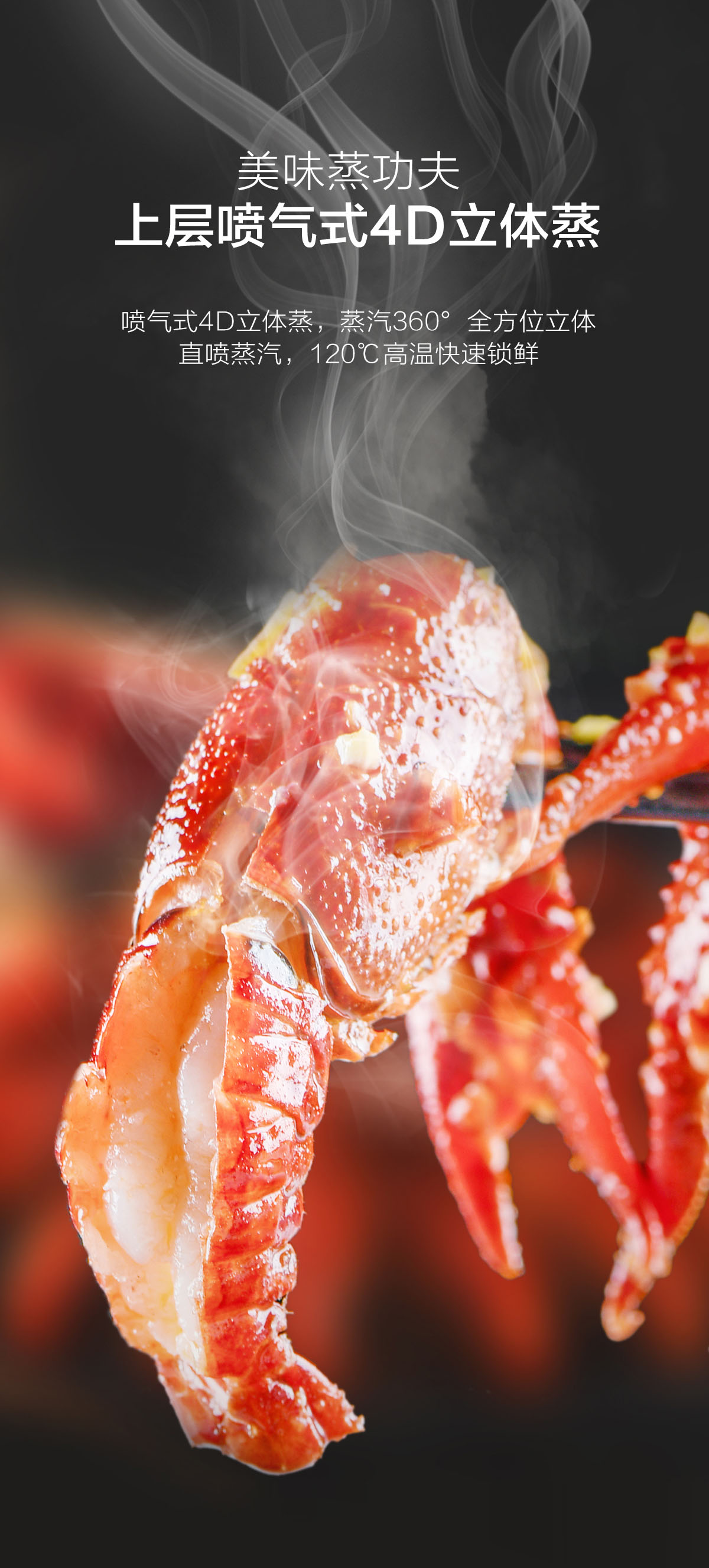 - 噴氣式4D立體蒸,蒸汽360°包裹食材