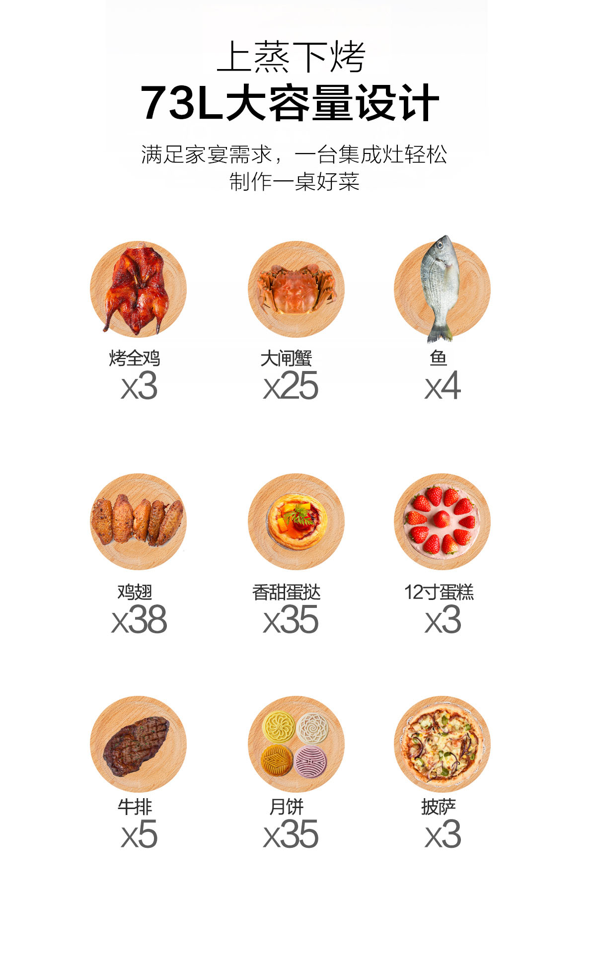 蒸烤箱容積:73L
