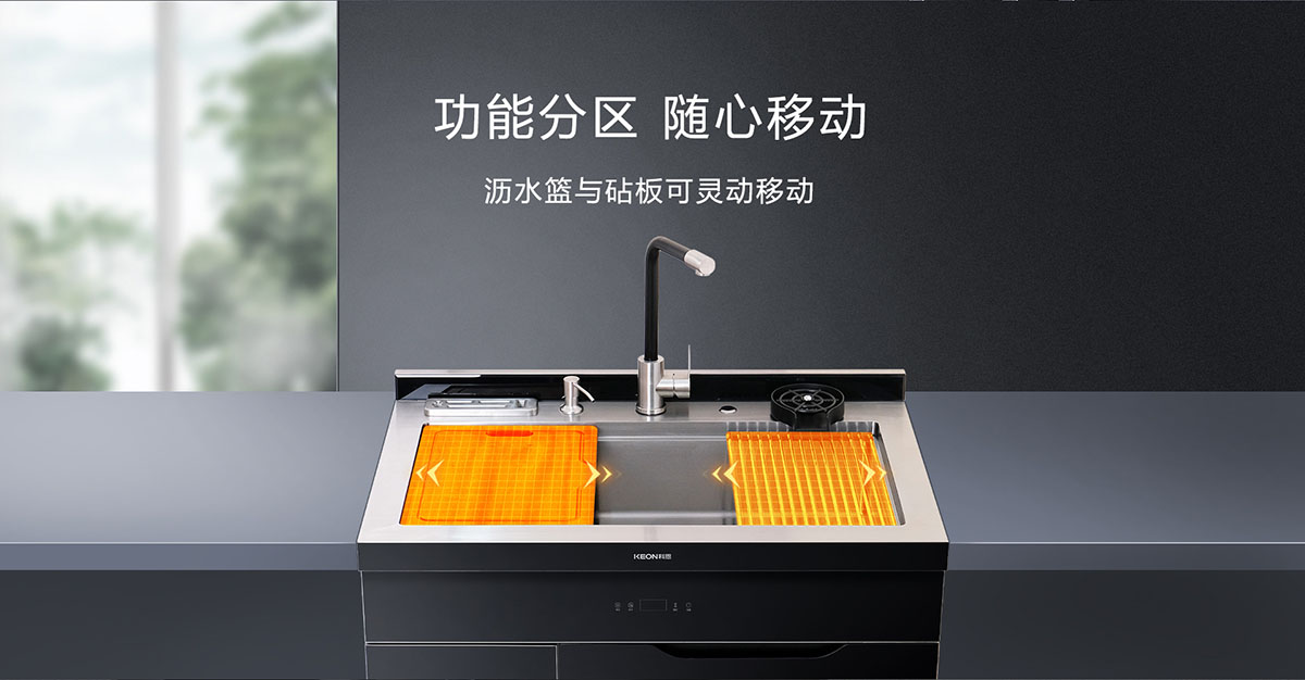 - 瀝水籃與砧板可靈動移動,功能分區,隨心移動