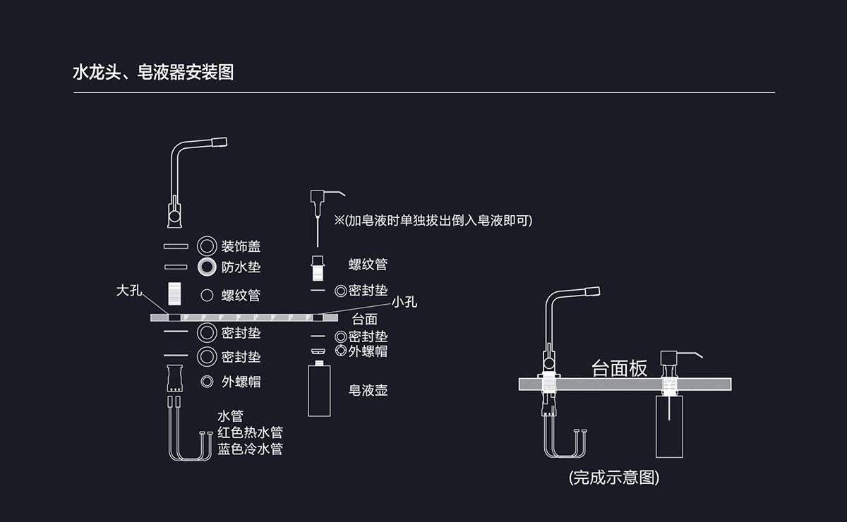 - 高端內置皂液器,隨洗隨用 ,不占空間更便捷