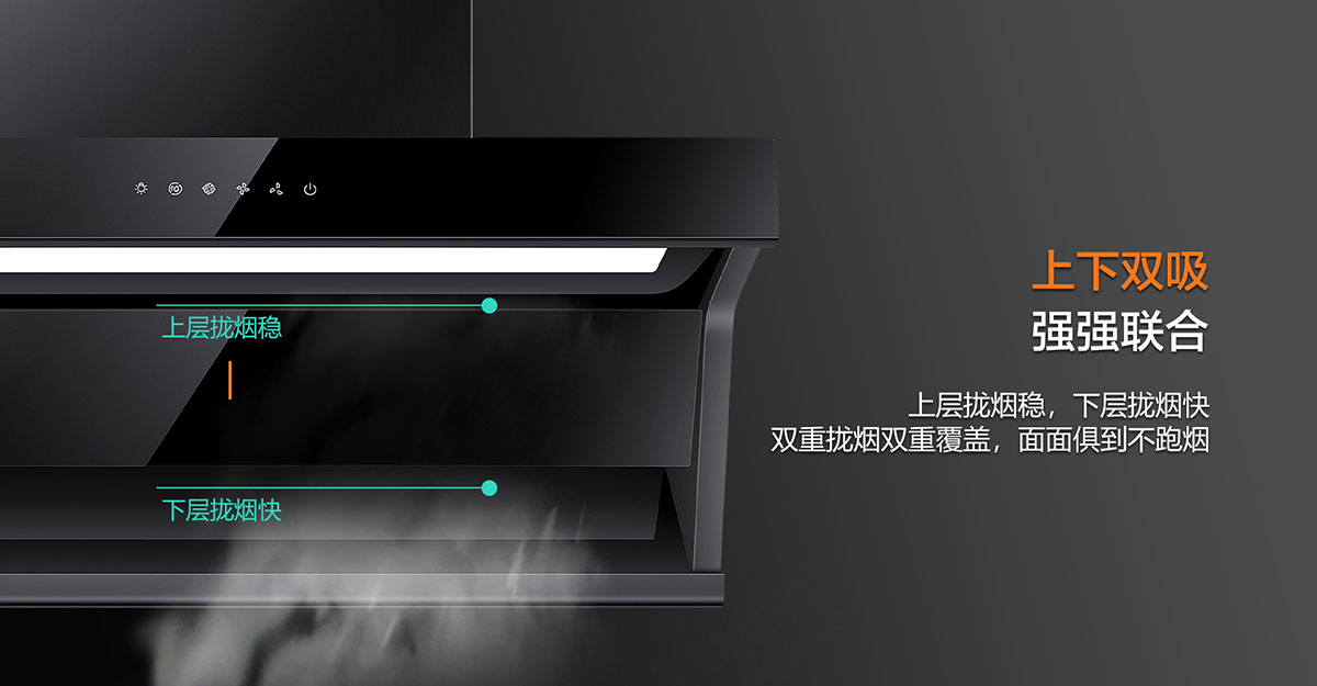 • 上下雙吸,下強吸,上快攏,強強聯合,油煙0逃逸