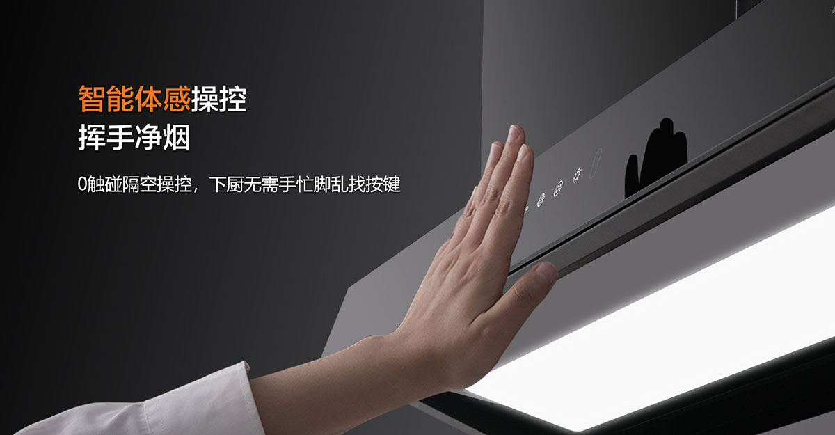 • 智能體感,0觸碰隔空操控,玩轉廚房,揮手凈煙