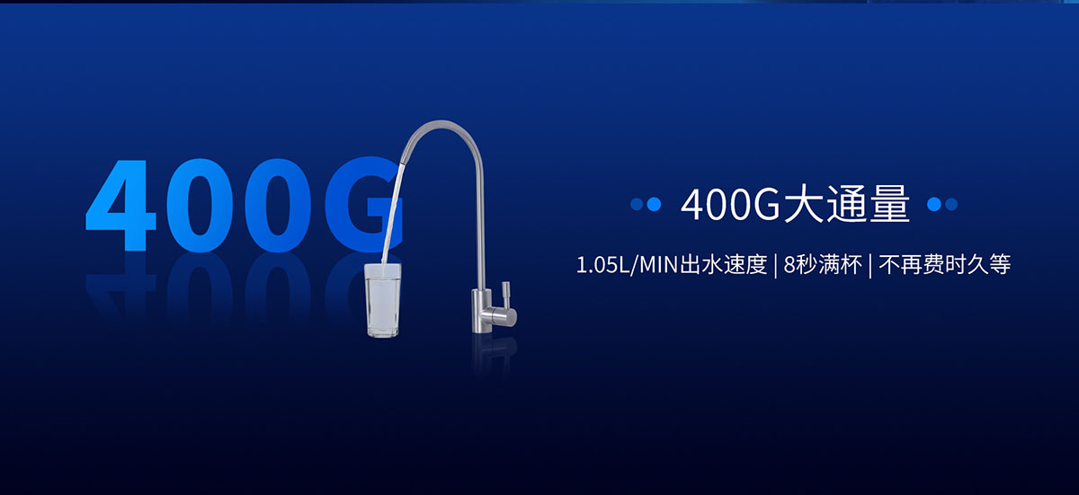 • 400G大通量,1.05L/min出水速度,8秒滿杯