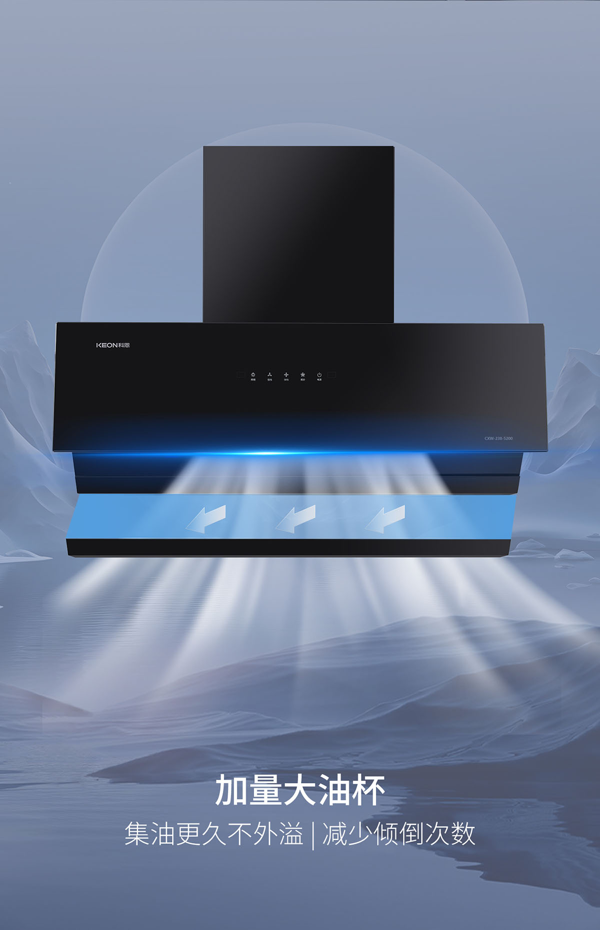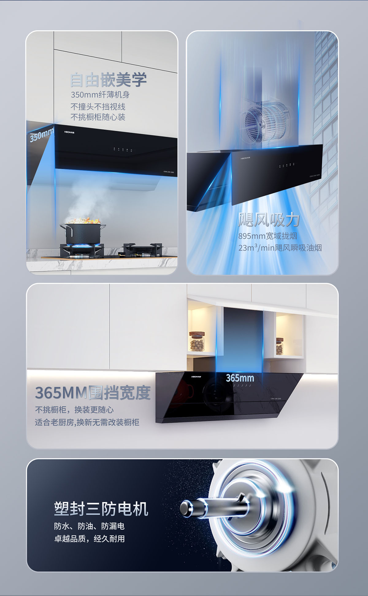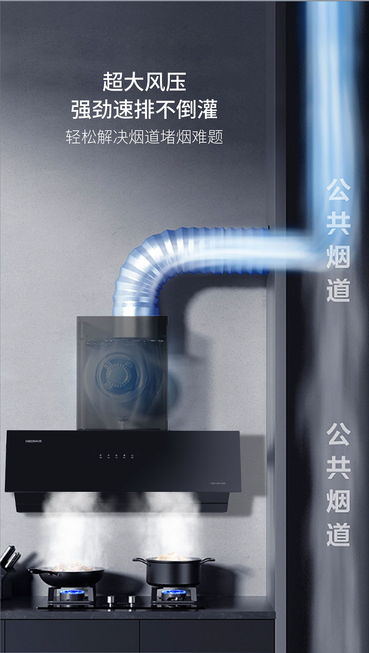- 23m³/min颶風吸力,瞬吸油煙,打造無煙廚房