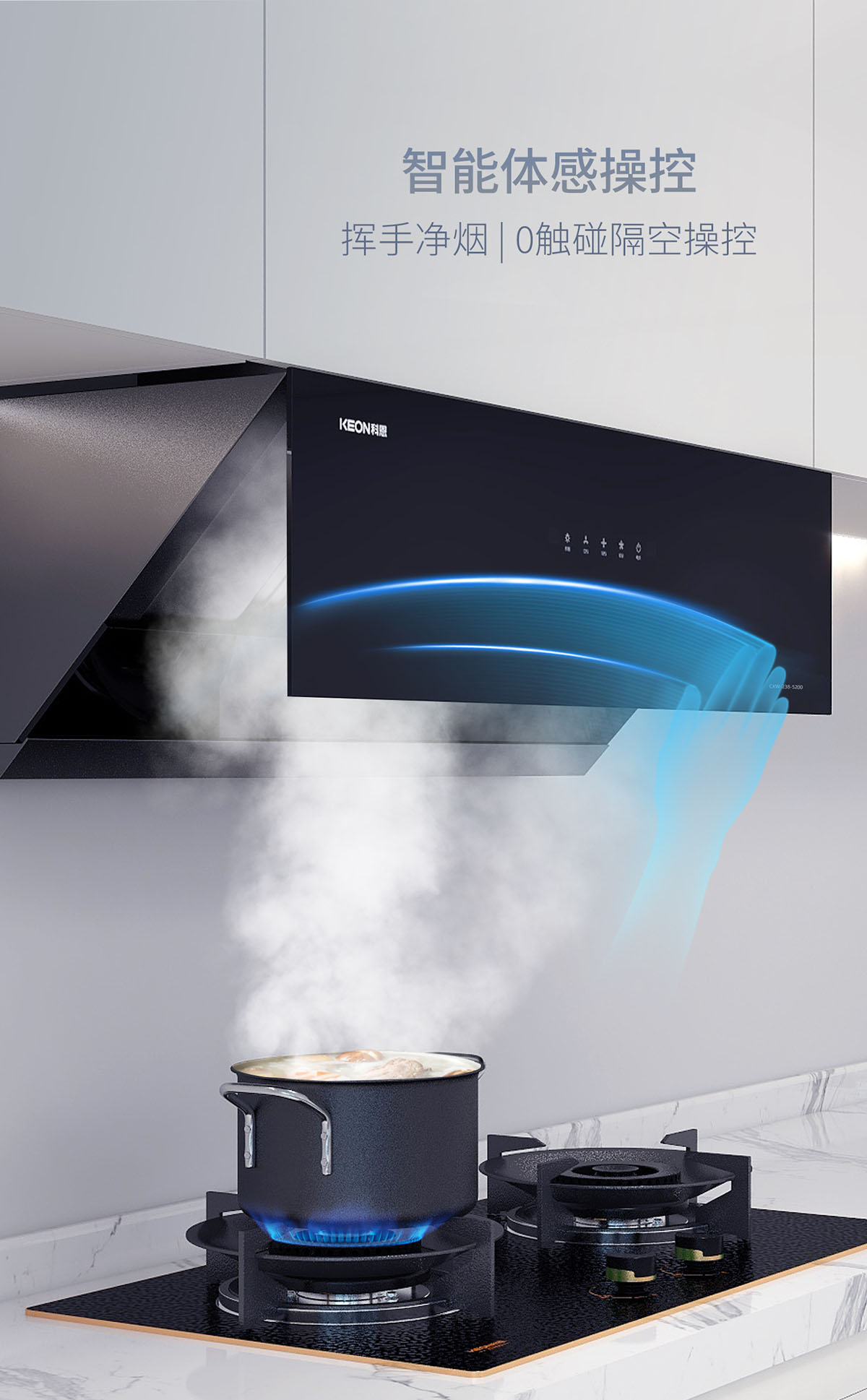 - 智能體感操控,揮手凈煙,0觸碰隔空操控