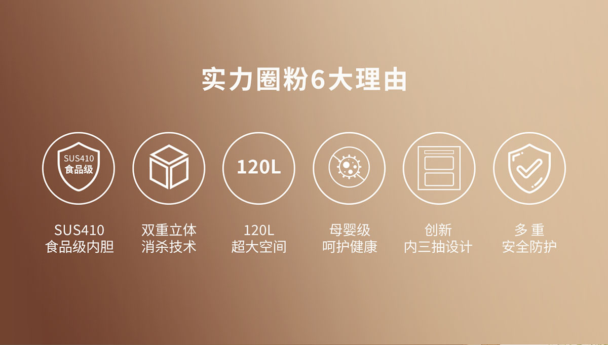 產品型號:ZTD120L-K51(炫彩屏內三抽款)產品名稱:科恩內三抽消毒柜