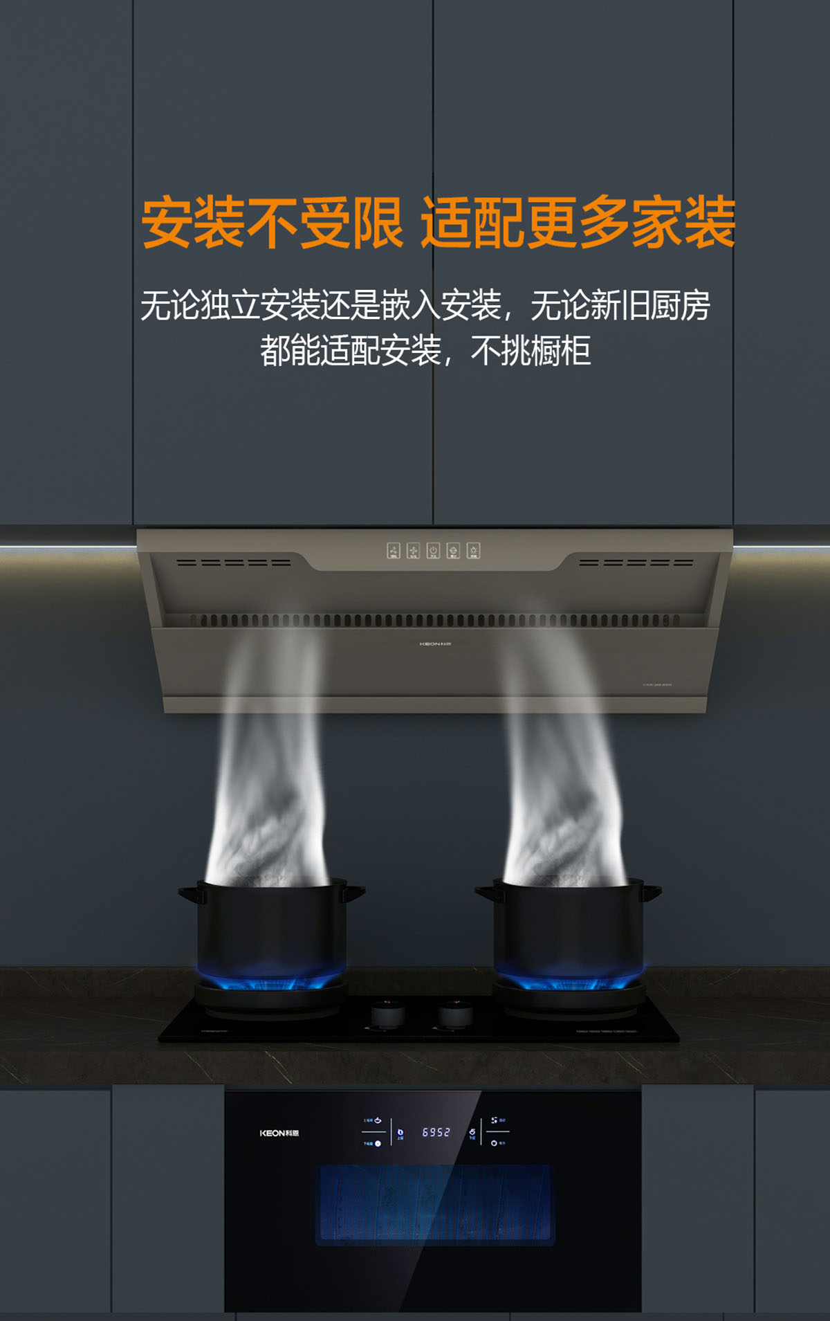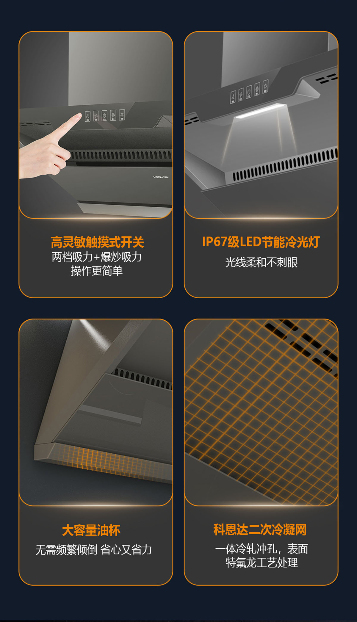 - 黃金控煙勁吸設計,攏煙面積增加50%,油煙0逃逸
