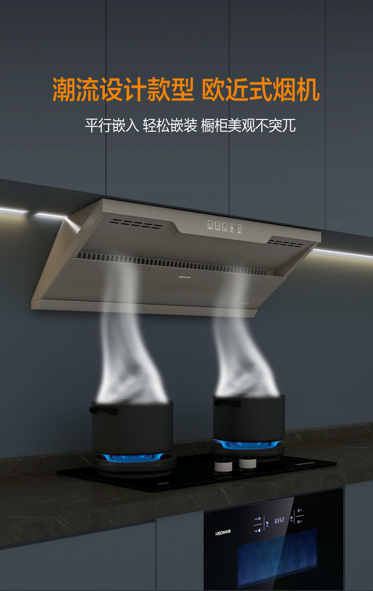 - 歐近式煙機,平行嵌入,輕松嵌裝,櫥柜美觀不突兀