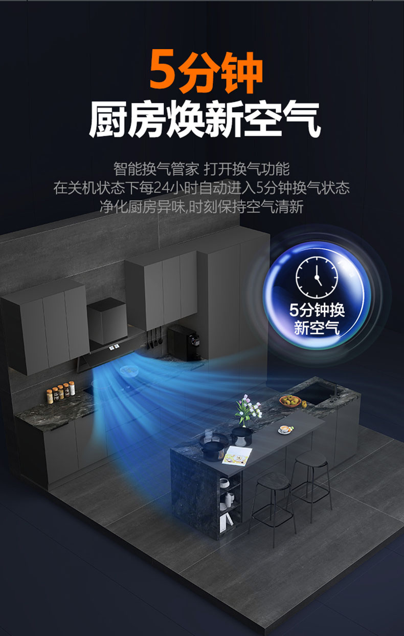 - 智能換氣管家,凈化廚房異味,時刻保持空氣清新