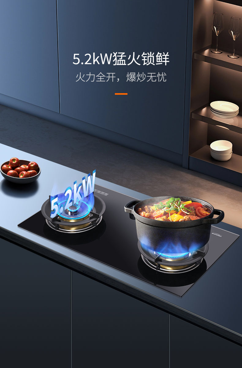 • 5.2kW猛火鎖鮮,火力全開,爆炒無憂