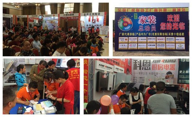 11月1日,科恩廚房電器亮相樂(lè)購(gòu)中國(guó)貴陽(yáng)烏當(dāng)站活動(dòng)現(xiàn)場(chǎng),與英皇衛(wèi)浴、銀燕地板、凱麗達(dá)瓷磚、頂上集成吊頂?shù)榷嗉医ú募揖?..